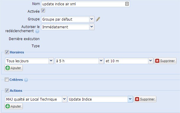 4 Il ne nous reste plus qu’a configurer un actionneur HTTP qui réalisera la mise à jour des fichiers xml une fois par jour: