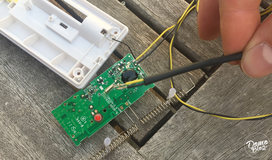 5 Placez à présent un morceau de gaine thermo sur les fil avant de souder la sonde.