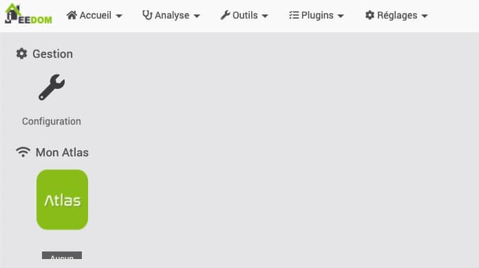 Une fois le plugin installé, rendez-vous dans le menu Plugins / Passerelle domotique / Atlas