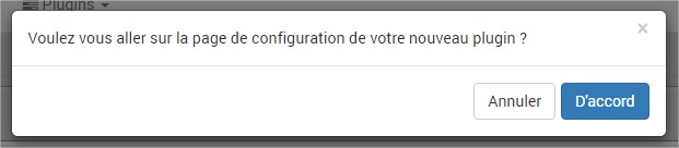 1 Lancez l’installation du plug-in 2 A la fin de l’installation, un message vous demande si vous voulez vous rendre sur la page de configuration, faite d’accord pour passer à l’étape suivante, la configuration.La configuration du plug-in