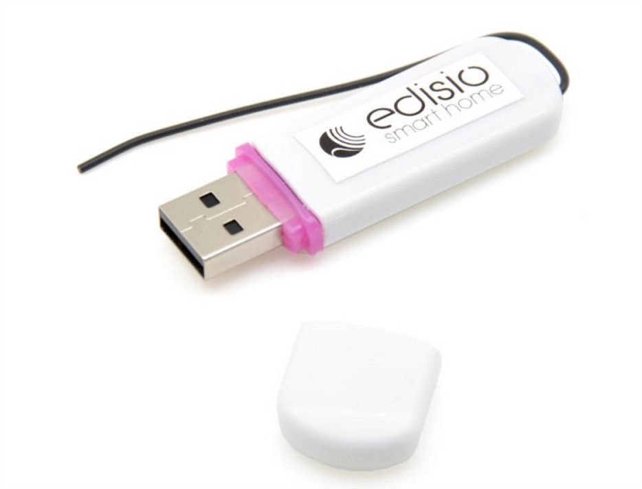 Pour utiliser les périphériques Edisio sur Jeedom, il faut disposer d’un dongle USB. Il s’agit tout simplement d’un récepteur au format clé USB qui permet à Jeedom de comprendre et d’interpréter les trames de donnée de ce protocole. Ce dongle coûte 59€ chez Domadoo