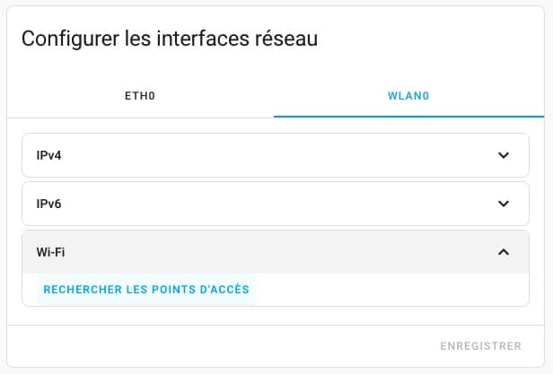Maintenant, sous le menu de configuration réseau de HA, vous avez deux onglets disponibles, le premier ETH0 est pour la connexion filaire, celui qui nous intéresse et donc le second, cliquez dessus, puis développez IPV4 pour cocher l’option DHCP.