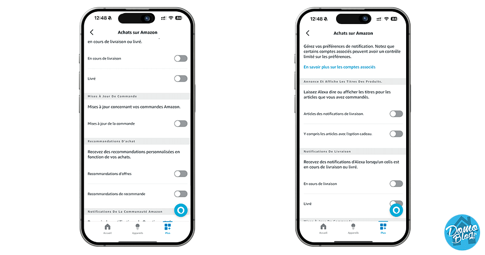 Sous Parametres, ouvrez le menu Notifications puis le sous menu Achats sur Amazon.