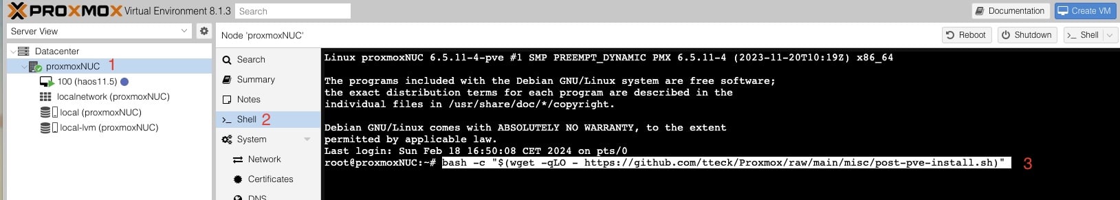 bash -c "$(wget -qLO - https://github.com/tteck/Proxmox/raw/main/misc/post-pve-install.sh)"