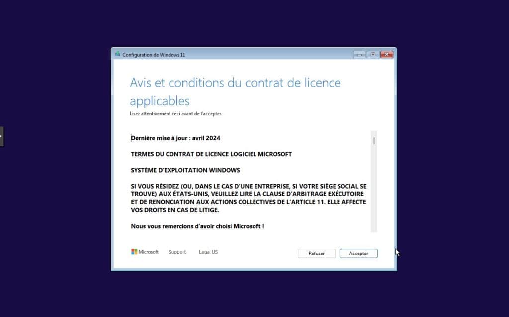 6. On accepte la licence pour continuer.