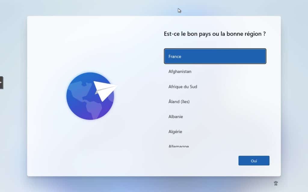 17. Nous voici enfin à la sélection du pays, menu bien connu de la procédure d’installation habituelle de Windows.