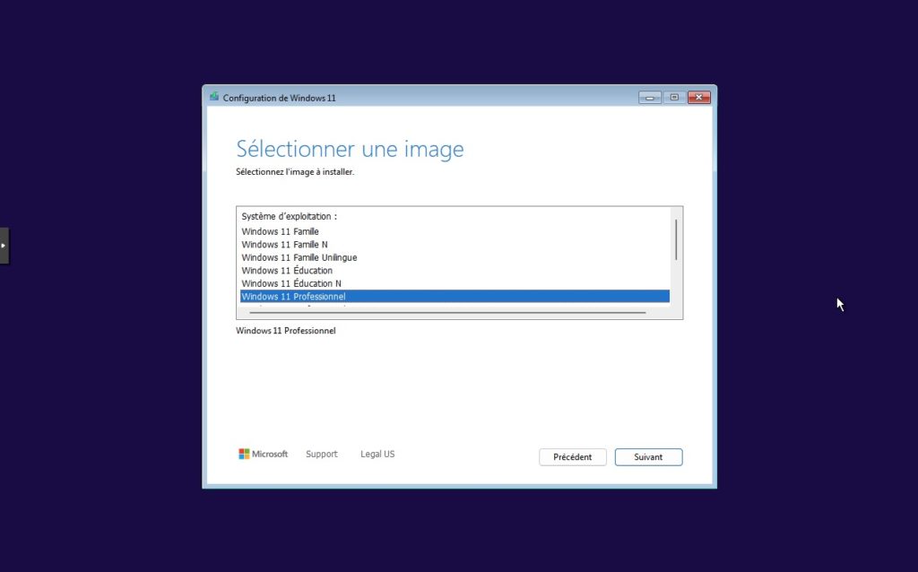 5. Suivant l’image que vous utilisez, vous devrez peut-être choisir la version a installer. Evitez les version Home limités en fonctionnalités avancées et choisissez plutôt une version pro.