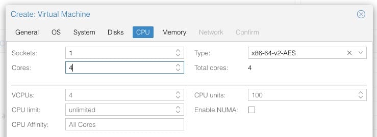 8. Sous l’onglet CPU, attribuer au moins 4 coeurs à cette VM Windows.