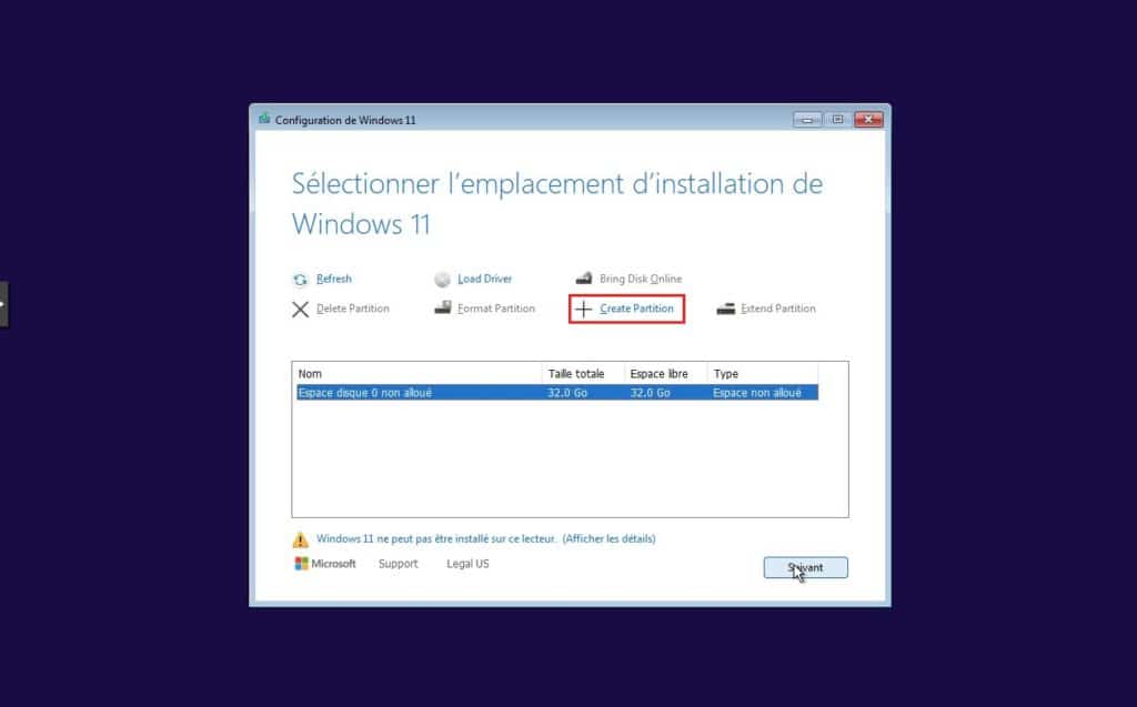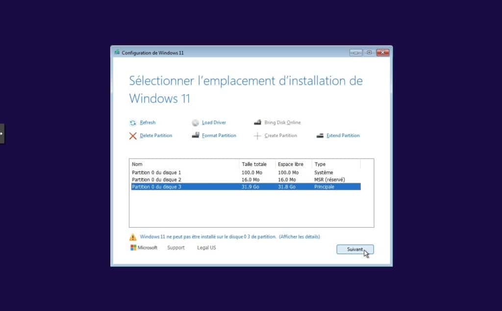 13. Enfin, sélectionnez la partition ou installer Windows 11.
