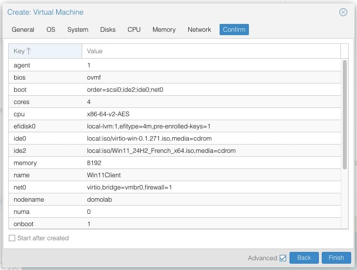 11. On confirme la configuration et on démarre la création de cette VM Win11.