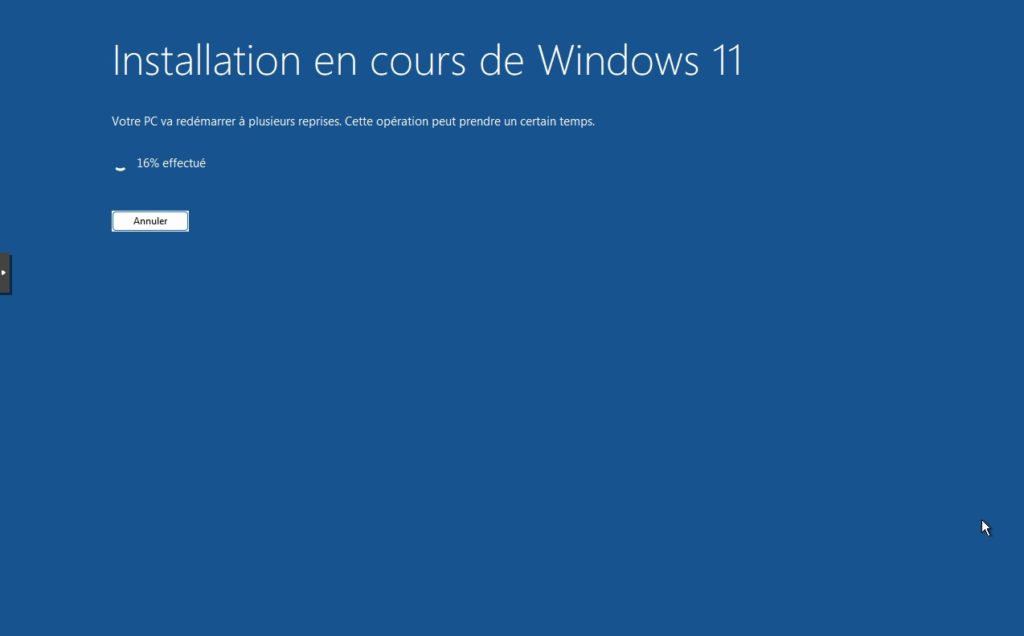 1. La Machine virtuelle Windows 11 demarre, patientez quelques secondes, Windows va s’initialiser.