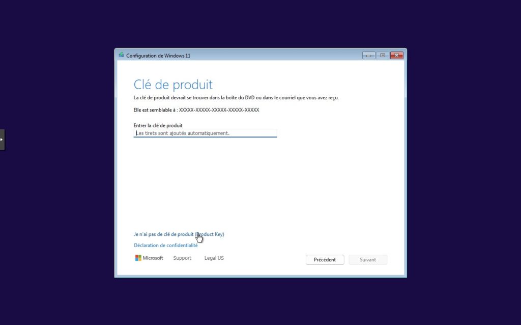 4. Si vous n’avez pas de clé d’activation, choisissez simplement Je n’ai pas de clé de produit sur cet écran.
