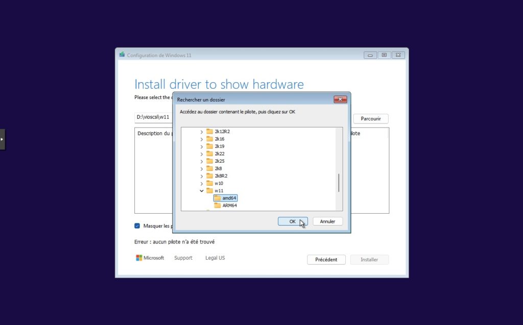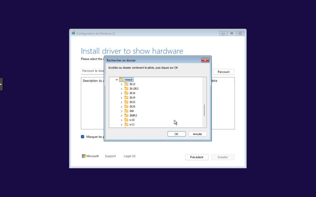 8. Naviguer vers l’emplacement des VirtIO drivers, c’est à dire le lecteur monté au demarrage.