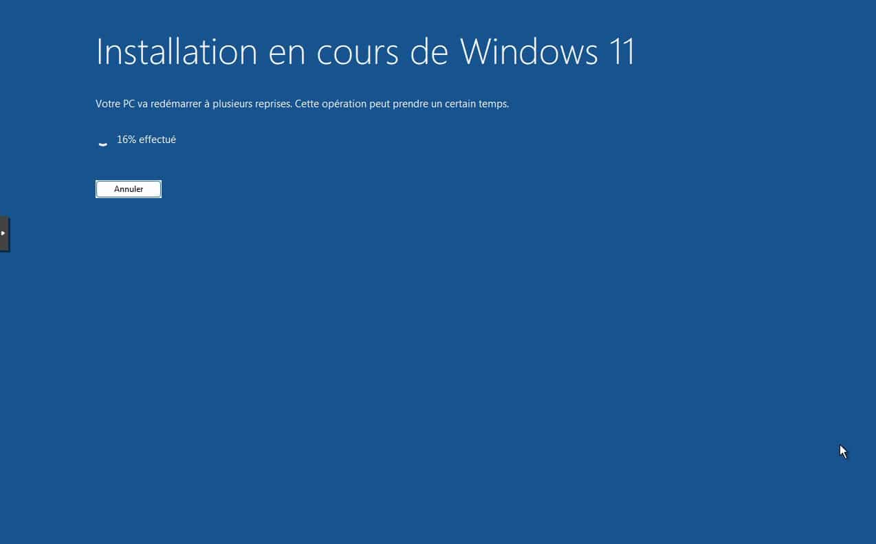 1. La Machine virtuelle Windows 11 demarre, patientez quelques secondes, Windows va s’initialiser.