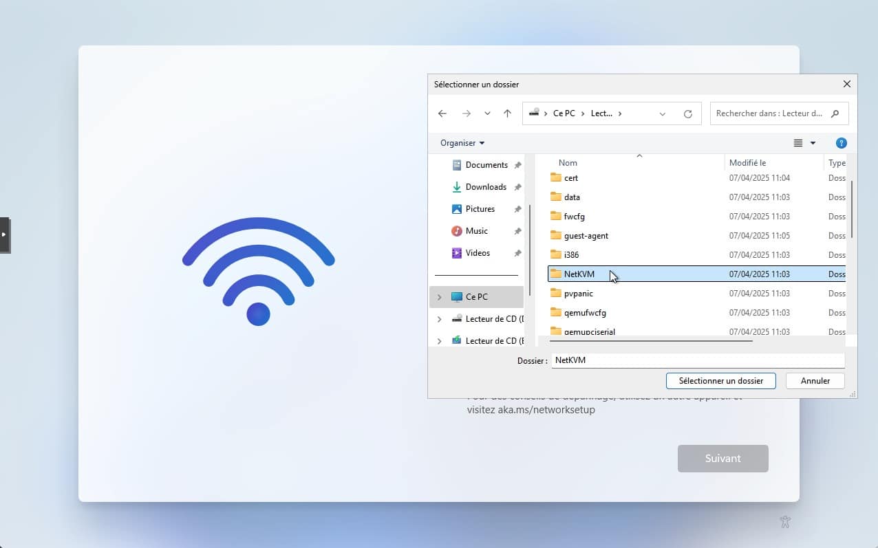 20. Naviguez vers le répertoire NetKVM.