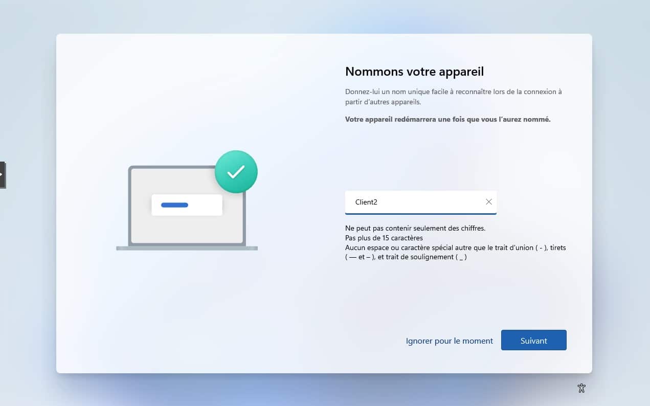 24. L’installation touche à sa fin, il est temps de donner un nom au notre ordinateur virtuelle sous Windows 11.