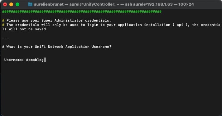 8. Avant de pouvoir effectuer la sauvegarde, le script a besoin de se connecter au système. Indiquez-lui simplement les identifiants administrateurs que vous utilisez pour administrer votre contrôleur Wi-Fi.