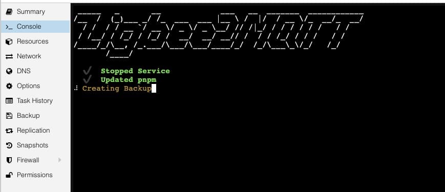 Attention. La commande “update” ne fonctionne que si le container à été créé avec le script de la proxmox script community de github.