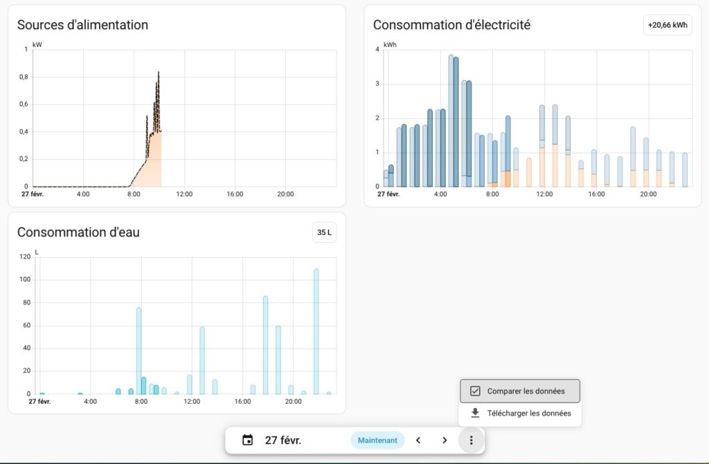 - Visualisation plus fine : On peut désormais analyser sa consommation avec une précision accrue, notamment sur les périodes de transition (passage du solaire au réseau).