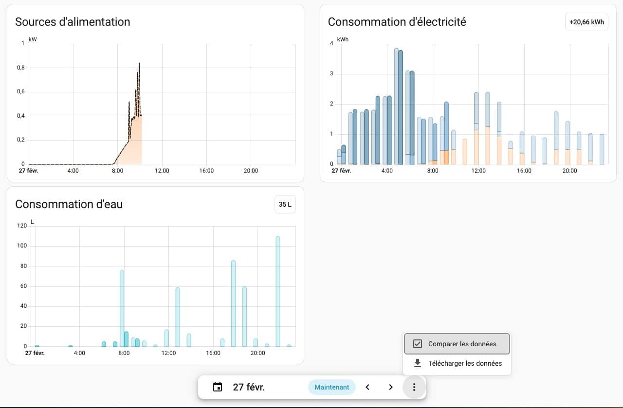 - Visualisation plus fine : On peut désormais analyser sa consommation avec une précision accrue, notamment sur les périodes de transition (passage du solaire au réseau).