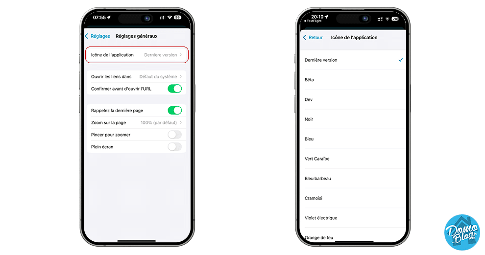 Pour ce faire, vous devez vous rendre dans les paramètres de l’application, puis dans le menu icône de l’application. Dans ce menu vous aurez le choix avec une longue liste d’icônes à assigner à votre application domotique préférée.