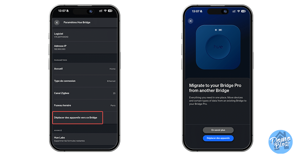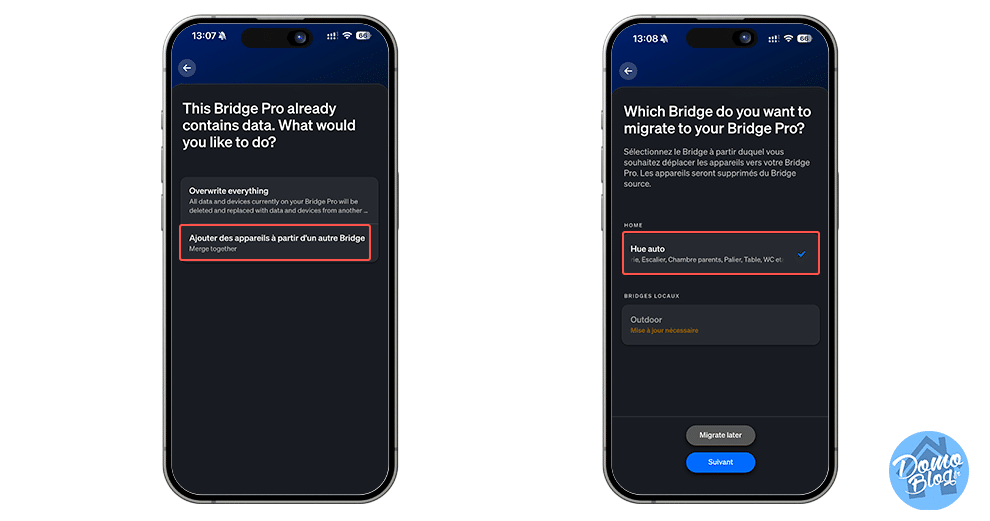 Il existe deux procédures selon le cas. Si comme moi vous avez déjà activé le Hue Pro et migré votre pont principal vers ce dernier, la migration d’un pont additionnel est simple et rapide.