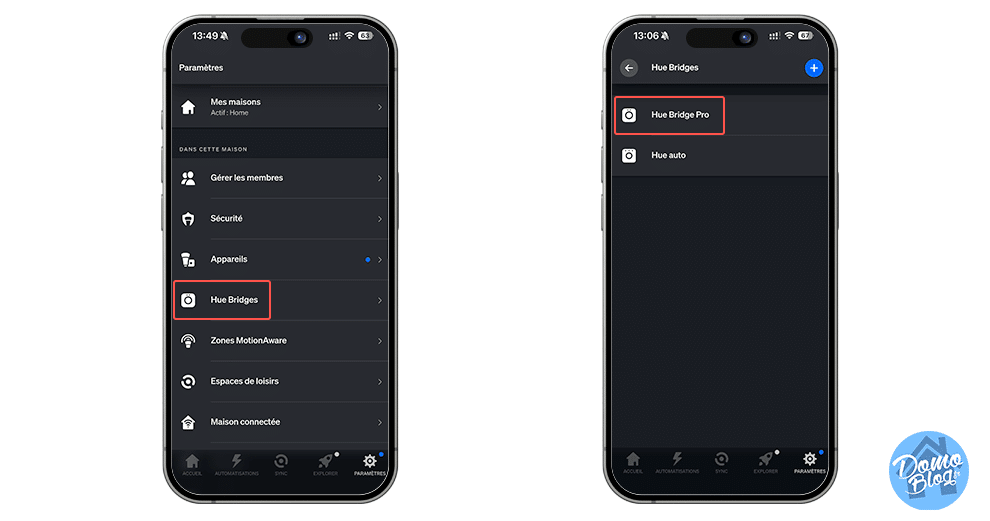 1. Rendez-vous dans les paramètres de l’application et sélectionnez le pont Hue Pro.