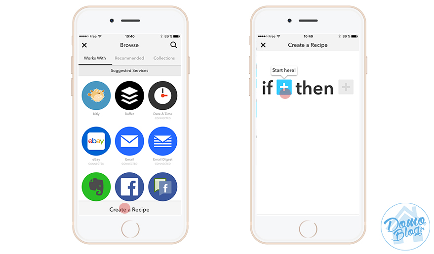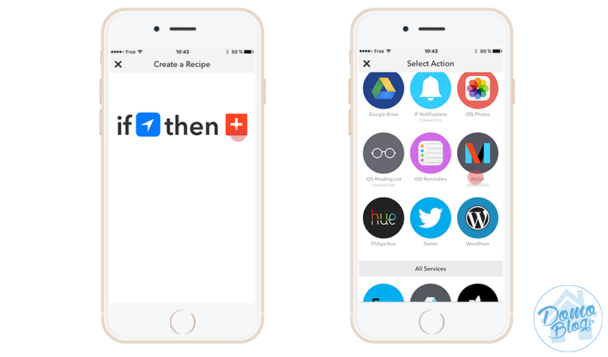 Dans le jargon IFTTT, une programmation ou regle se nomme une recette, alors si vous avez tout les ingrédient à savoir un iPhone et l’application IFTTT pour iOS ainsi que vos ID API eedomus, on va pouvoir commencer.