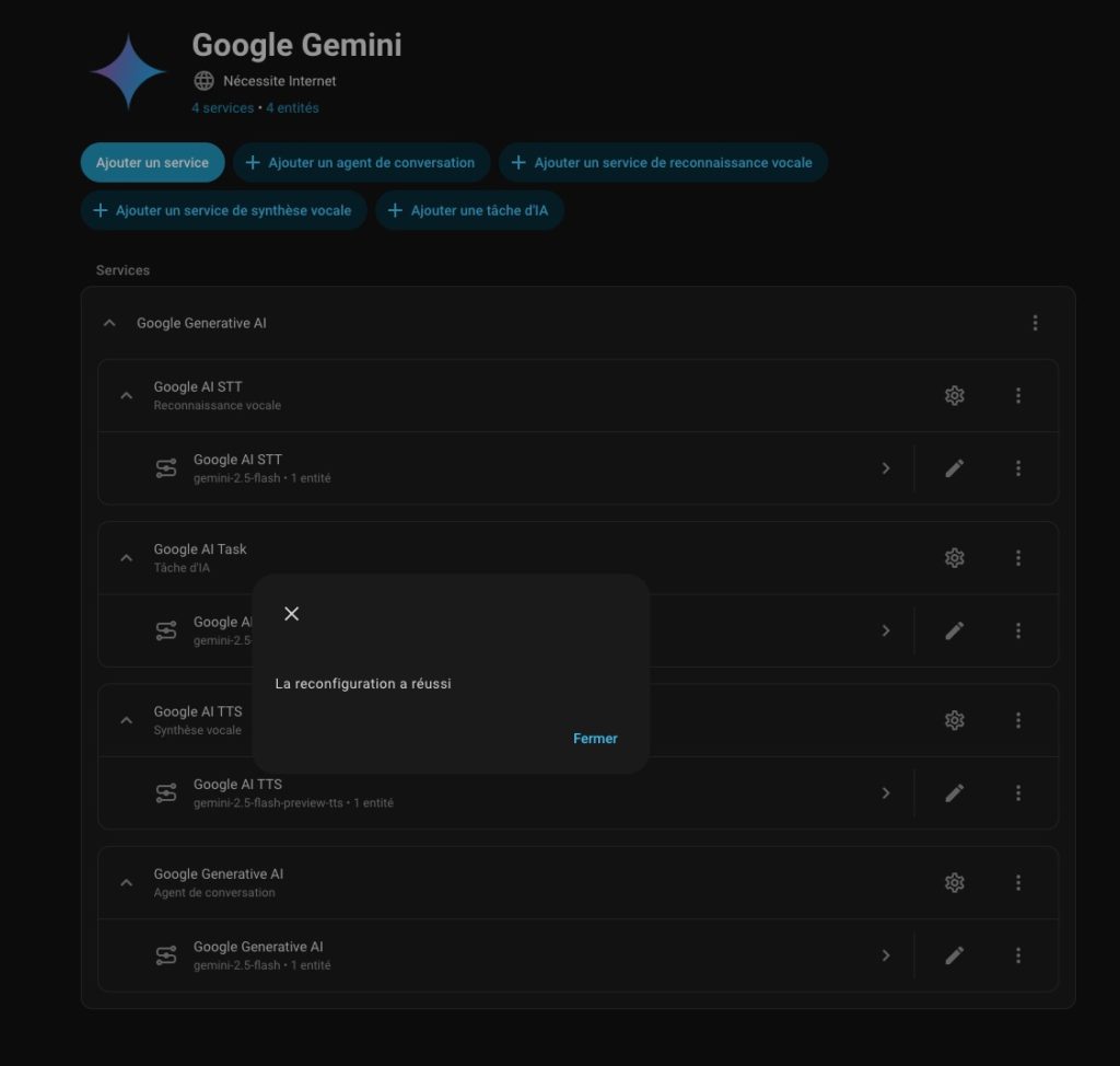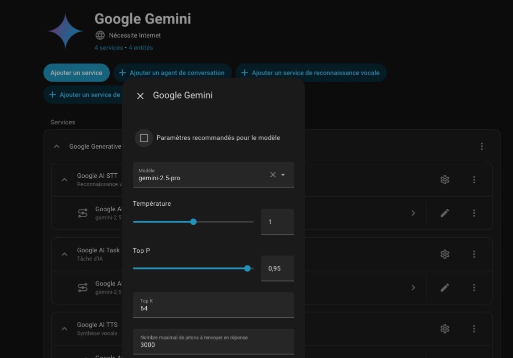 5. Valider le changement et voila le modele Gemini pro actif sur votre système domotique.