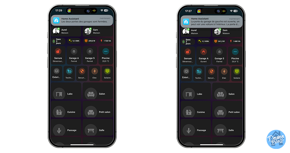 - La vérification de l’état des portes de garage à l’aide d’une capture de la caméra pour confirmer que tout est en ordre, ou le cas échéant, m’avertir en détail de la porte défectueuse.