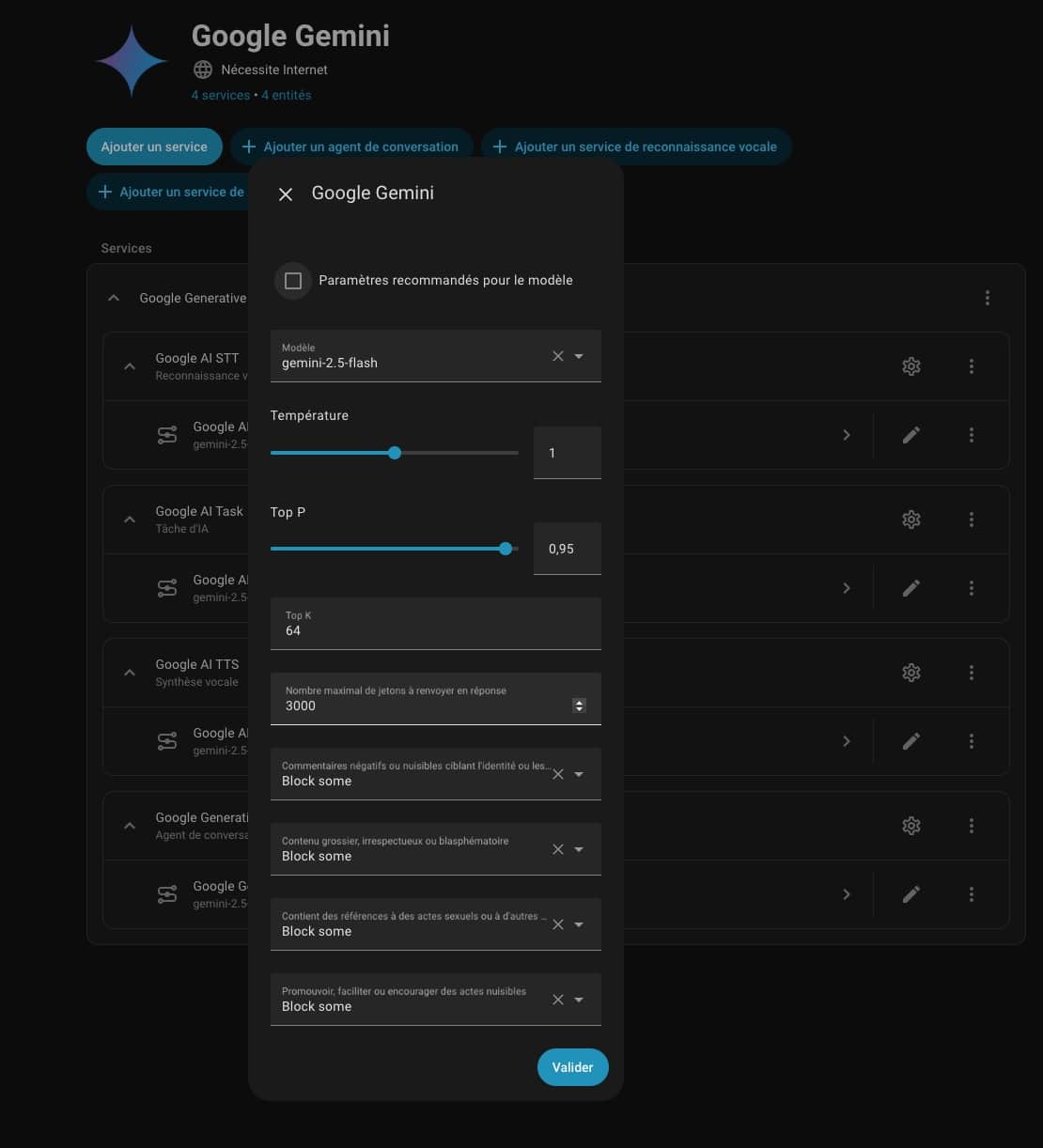 5. Valider le changement et voila le modele Gemini pro actif sur votre système domotique.