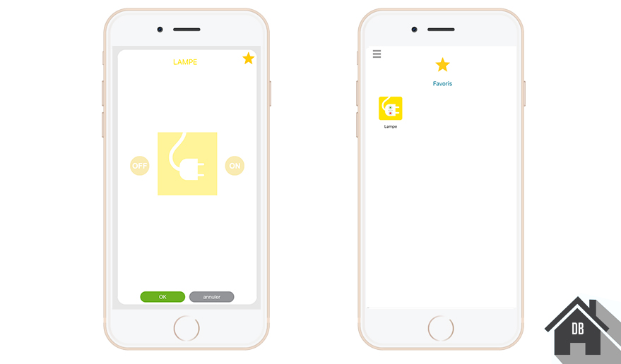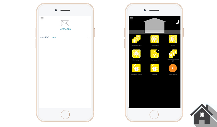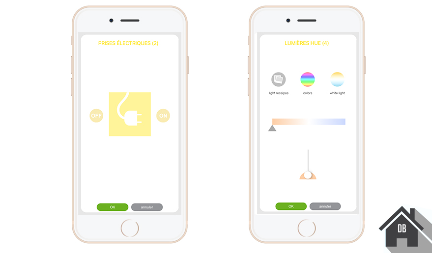 2 Depuis la page d’accueil, agissez simplement sur les périphériques, par exemple ici à gauche sur une prise commandée ou encore à droite sur une ampoule connecté Philips Hue.