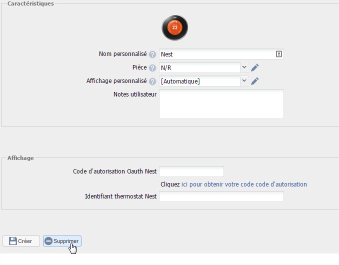 1- commencez par ajouter un nouveau périphérique et choisissez le thermostat Nest (cette étape va uniquement permettre de récupérer les codes d’autorisation Nest: