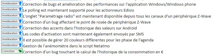 Vous pouvez consulter la liste des évolutions sur le portail eedomus ici.