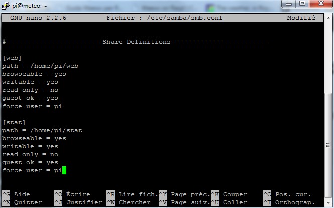pi@raspberrypi~ $ sudo nano /etc/samba/smb.conf