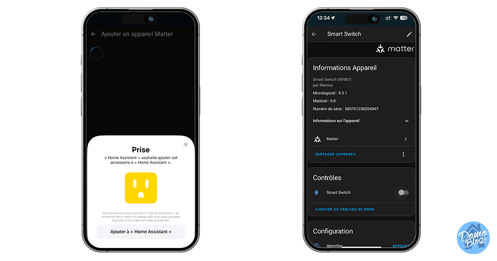Intégration sous Home Assistant via Matter, presque sans contrainte