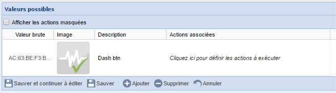 • La ligne action btn dash se crée automatiquement à la découverte et l’ajout du périphérique, Attention elle dépend du nom du périphérique “Action btn DASH ” c’est le nom que j’ai donné