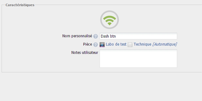 8 Renseignez le nom du peripherique ici Dash btn, puis sauvegardez.
