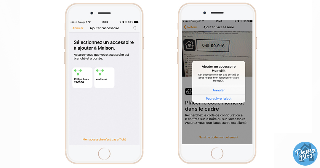 7 Ouvrez l’application Maison sur votre iPhone ou Ipad et faites Ajouter un accessoire, vos accessoires compatibles Homekit sont détectés par l’application, sélectionnez simplement eedomus et ajoutez l’accessoire via son code.