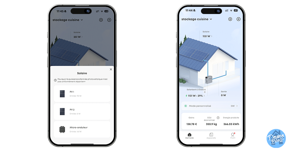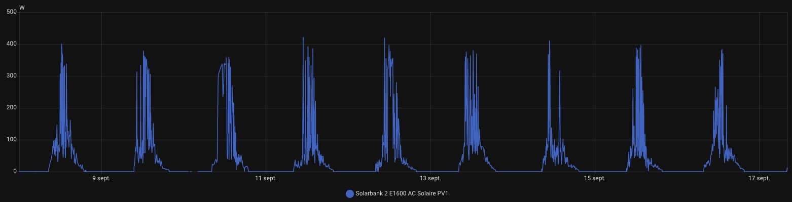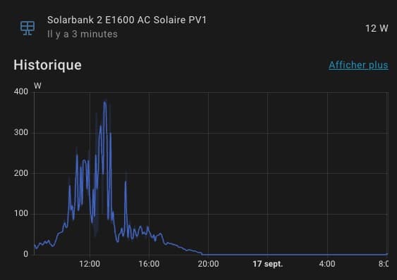 Le tout remonte dans la domotique Home Assistant et contribue au stockage de l’énergie pour une utilisation en soirée avec un très bon rendement. Un kit parfait pour qui veut s’initier à la production solaire et le début d’une facture d’énergie qui diminue enfin, tout cela depuis son balcon.
