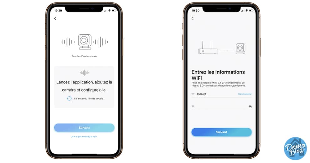 Démarrez l’assistant, entrez votre mot de passe wifi et scannez le QRCode généré à l’écran. C’est tout ce qu’il y a à faire pour connecter cette caméra.
