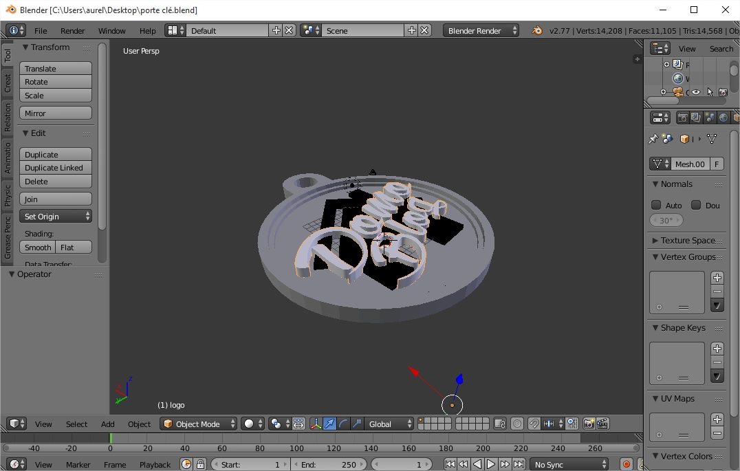 J’ai par exemple créé le logo du blog en 3D sous blender pour en faire un porte clé sympa, le résultat est vraiment sympa, je suis très satisfait de ma première pièce.