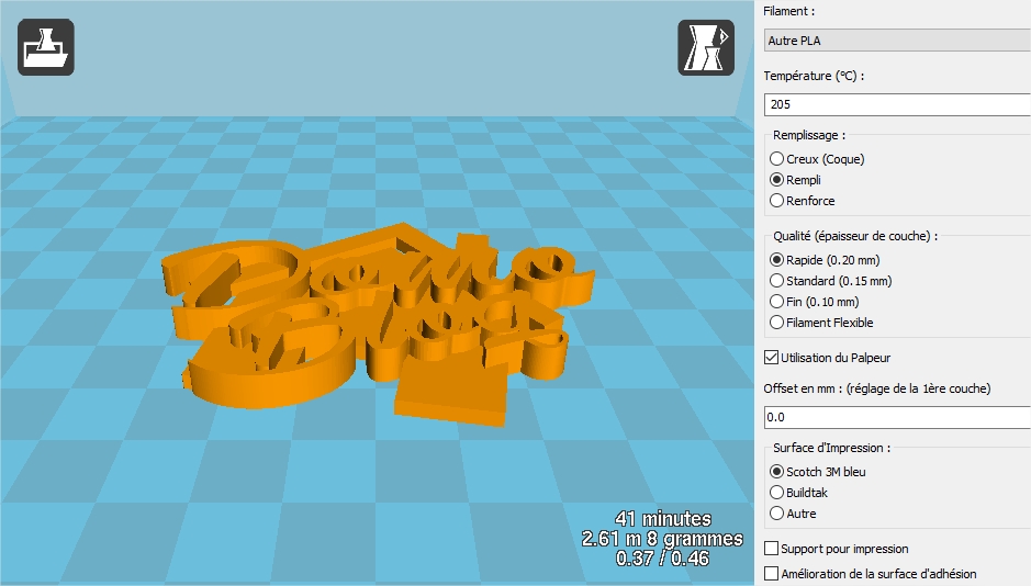 Hello, alors pour passer le logo en .stl ready pour l’impression c’est plutôt quels softs 🙂 En effet c’est pas super simple il faut passer par au moins 4 softs. j’ai du passer par photoshop, illustrator, blender, et cura