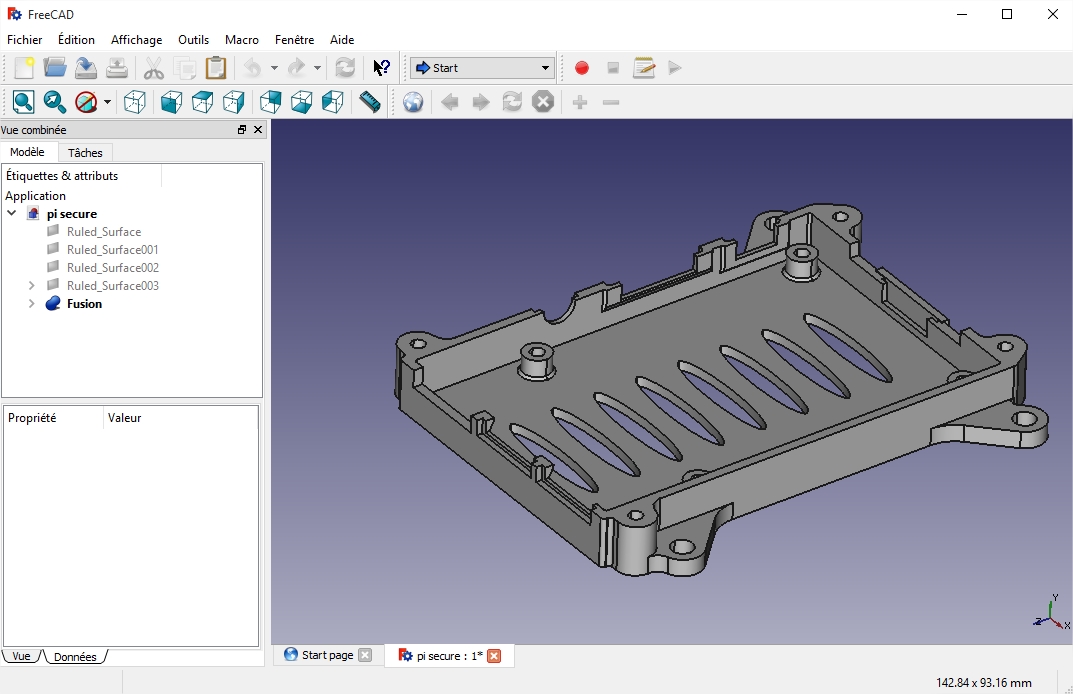 Sinon, vous pouvez aussi via ces logiciels, modifier un fichier téléchargé, j’ai par exemple modifié le boitier de raspberry sur le screen Freecad ci-dessus. J’avais besoin d’obstruer le trou de la carte SD afin de se prémunir des vols éventuels de carte auquel j’ai été confronté dans un environnement industriel… Là aussi, avec un peu de pratique aucun problème pour apporter cette modification au modèle.