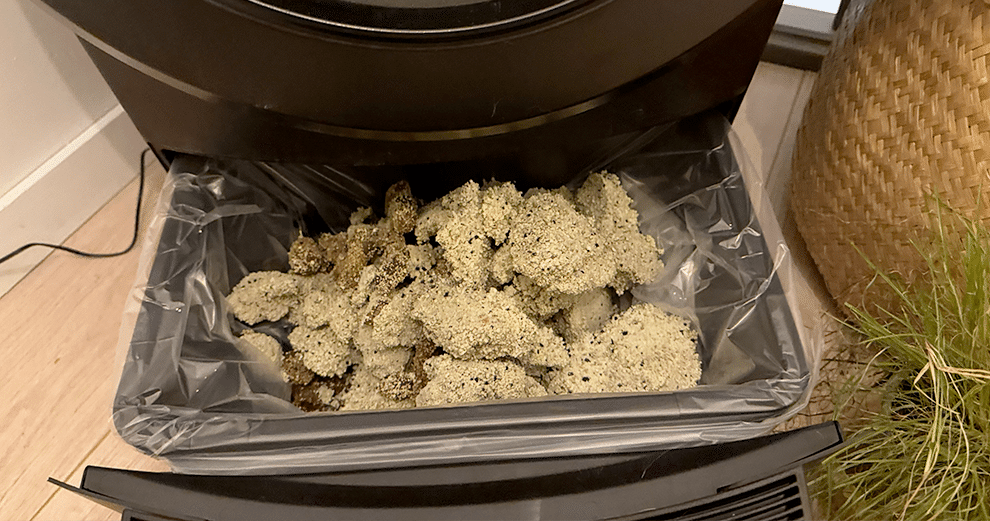 Le système ne gaspille que peu de litière et ne nécessite qu’un simple sac poubelle (souvent de cuisine) pour le tiroir de récupération.