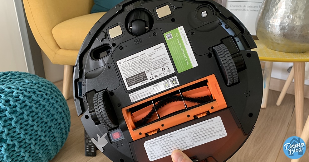 Doté d’une brosse rotative au niveau de sa bouche d’aspiration plus une autre brosse périphérique. A elles deux, les brosses captent très bien la poussière, les poils d’animaux et autres miettes, laissant place nette après le passage du robot.