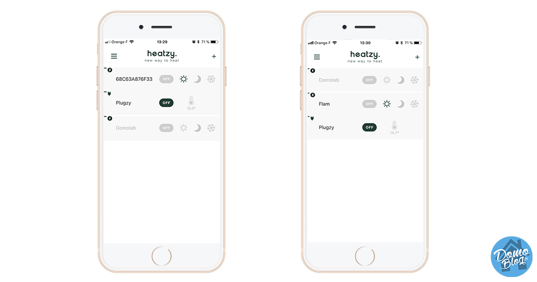 C’est donc le Plugzy qui mesure la température ambiante. Il se connecte au relais positionné sur la chaudière ainsi qu’au wifi de la maison pour communiquer avec l’application qui permettra de programmer ou d’actionner le chauffage à la demande.
