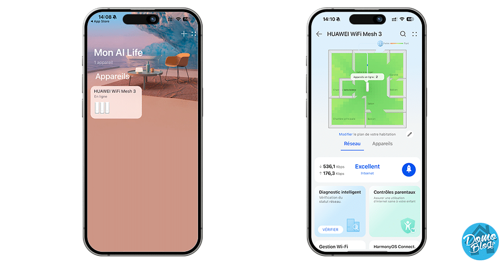 Globalement, l’application Huawei AI Life qui permet la supervision du kit Mesh de la marque est pratique, simple et efficace avec plusieurs menus intéressants pour superviser son système ainsi que des axes de sécurité comme le contrôle parental ou l’auto diagnostic boosté à l’intelligence artificielle.