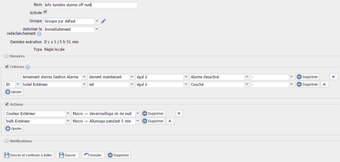 3 Règle 3 – Notification alarme déactivée de nuit