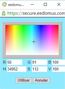 Il est possible d’ajouter une couleur à la liste prédéfinie via l’outil de sélection de couleur eedomus
